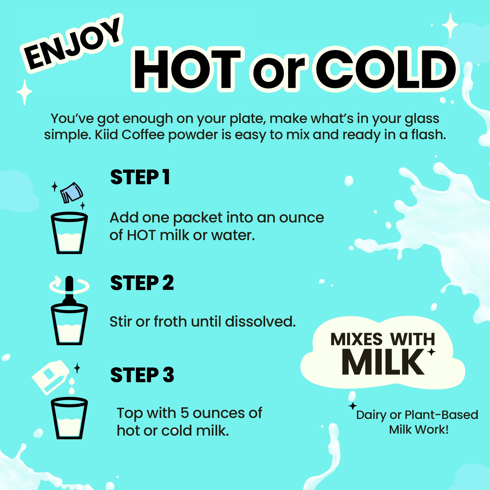 - Add a scoop of Kiid Coffee.